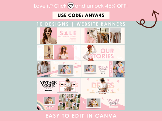 Website Banners | Pink Shopify Store Banners Templates | Vintage Vogue Studio Collection