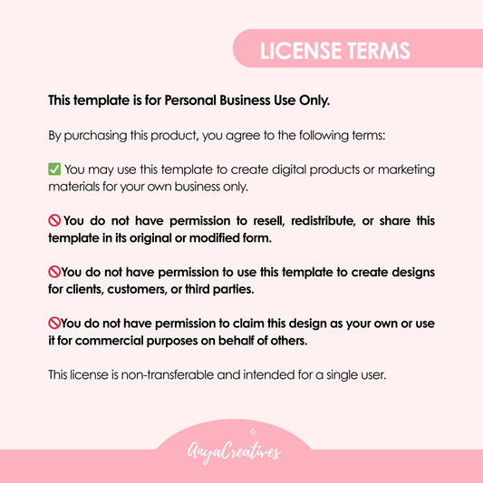 All designs are original and Β© AnyaCreatives. These templates are for personal and small business use only. Reselling, redistributing, or claiming the designs as your own is strictly prohibited.π Have questions? Feel free to message meβIβd be happy to help! π