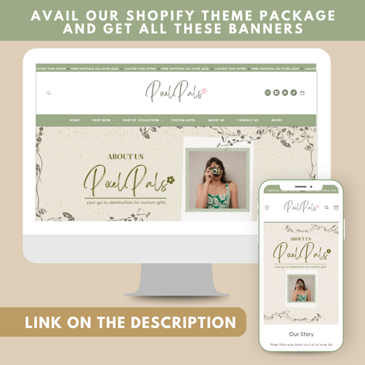 Each banner is fully customizable and optimized for web display, helping you communicate your brandβs essence while keeping your store looking cohesive and professional. Whether you're launching a new collection, announcing a sale, or just refreshing your storefront, these banners make it easy to connect with your customers in style.