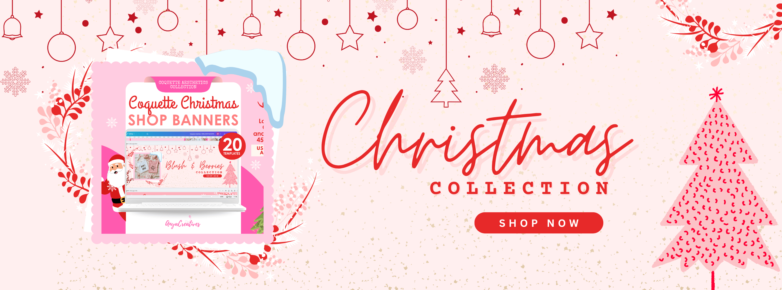 Regular price $32.00Regular priceUnit price / perSale price $32.00Give your shop a merry and chic holiday glow with these Pink Christmas Coquette Website Banner Templates! Designed in soft blush, pastel pink, ivory, and festive red tones β with delicate ribbons, ornaments, snowflakes, and cozy sparkle β these editable Canva banners are perfect for boutiques, apparel brands, or digital product shops that love a feminine and elegant Christmas vibe.